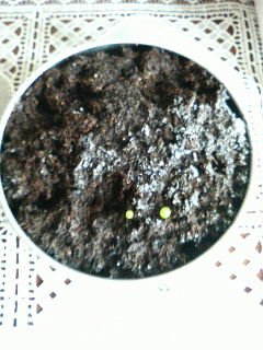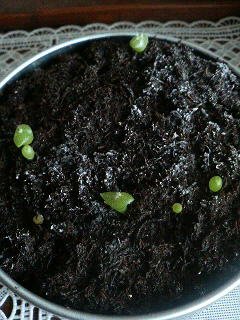 発芽して、土が白っぽくなったのが、やはり心配で、今日、植え替えてみることにした。