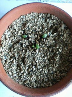 この写真の左側、金洋丸はまだ根が出てきてはいない。↓ でも、球体の様子が心配だ。青々と肌の色は大丈夫のように思えるが、少し、しわがよっているような、しぼんでいるような感じ。 やはり、買ってきてすぐに植え替えてあげるべきだった。化粧砂がのりでくっついているのでそれが原因なのかも。 花が咲き終わり、秋くらいになったら、植替え予定。 《ライオン錦》 ライオン錦は、のりで固められた砂にコップに入って売られていた物。 1回植替えをしたのだが、日光の光が弱かったせいか、土が合わなかったせいか、分からないが、このように曲がり、しわになってしまった。 これは、1ヶ月前に2回目の植替えをし、昨日写真を撮ったもの。 植替えをしたとき、新しい根がでていたので、成長を感じていた。 しばらく様子を見て、昨日よく見てみたら、このように、上の部分が生き生きとしてきた。