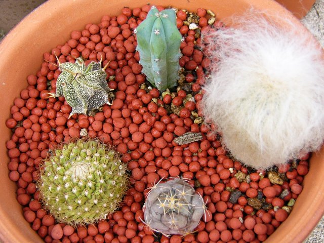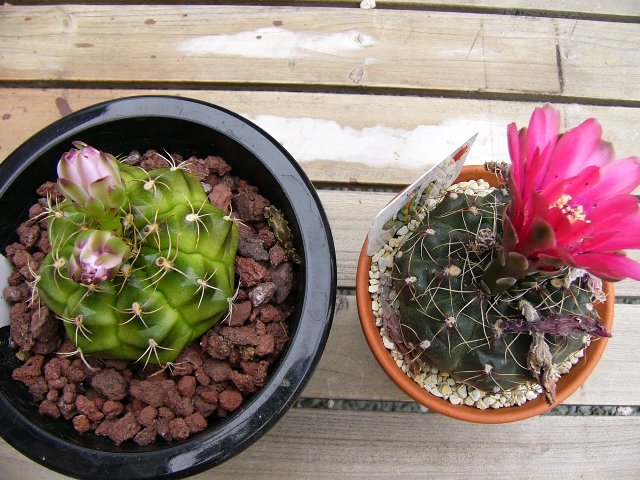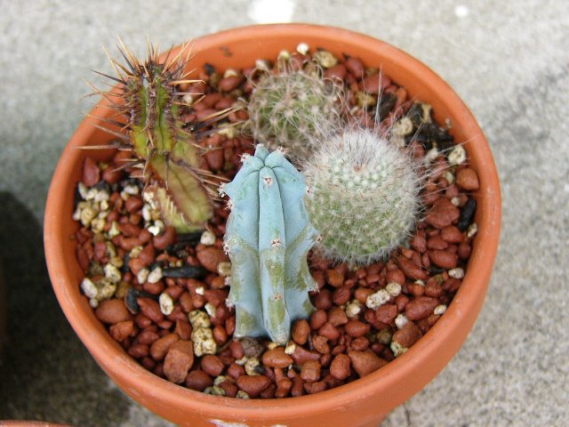 《水遣り報告》 本日の水遣りはこの3鉢と、上の縮玉、実生。 ← 寄せ植えしてから約1.5週間位。兜がすこし大きくなっているような感じ。