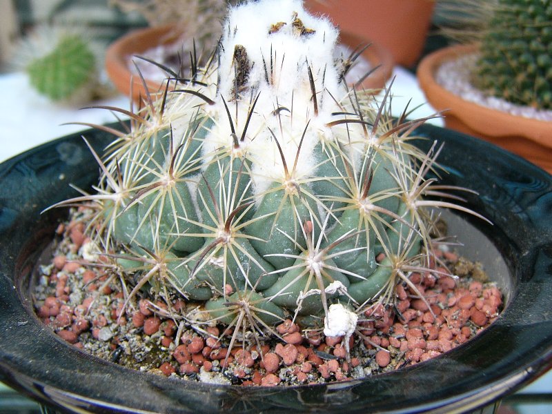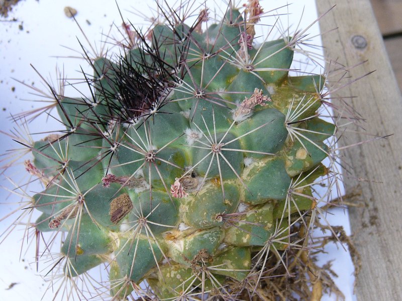 シャボテン公園から買ってきたもので、名前がよく分からないが、去年植替えを1回したが、つぼみは付くものの花は咲かなかった。根っこはやはり枯れ気味のように感じたが、根腐れのようなものはなかた。ただワタムシが付きやすい。