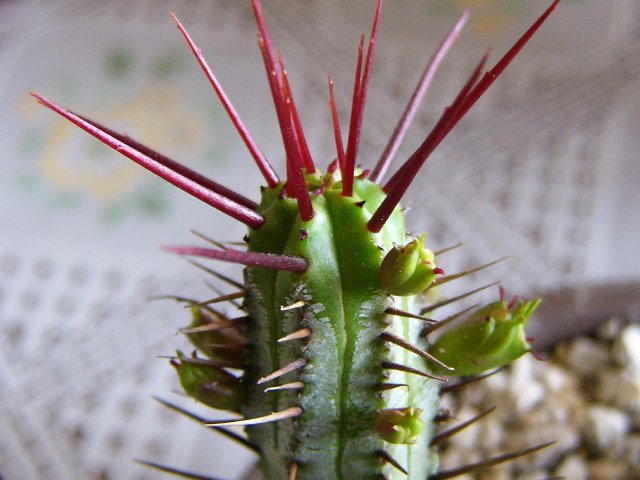 今年に入り、このように、棘がものすごく伸び、まわりにはいくつかの 新しい芽のようなものが出てきた。 |